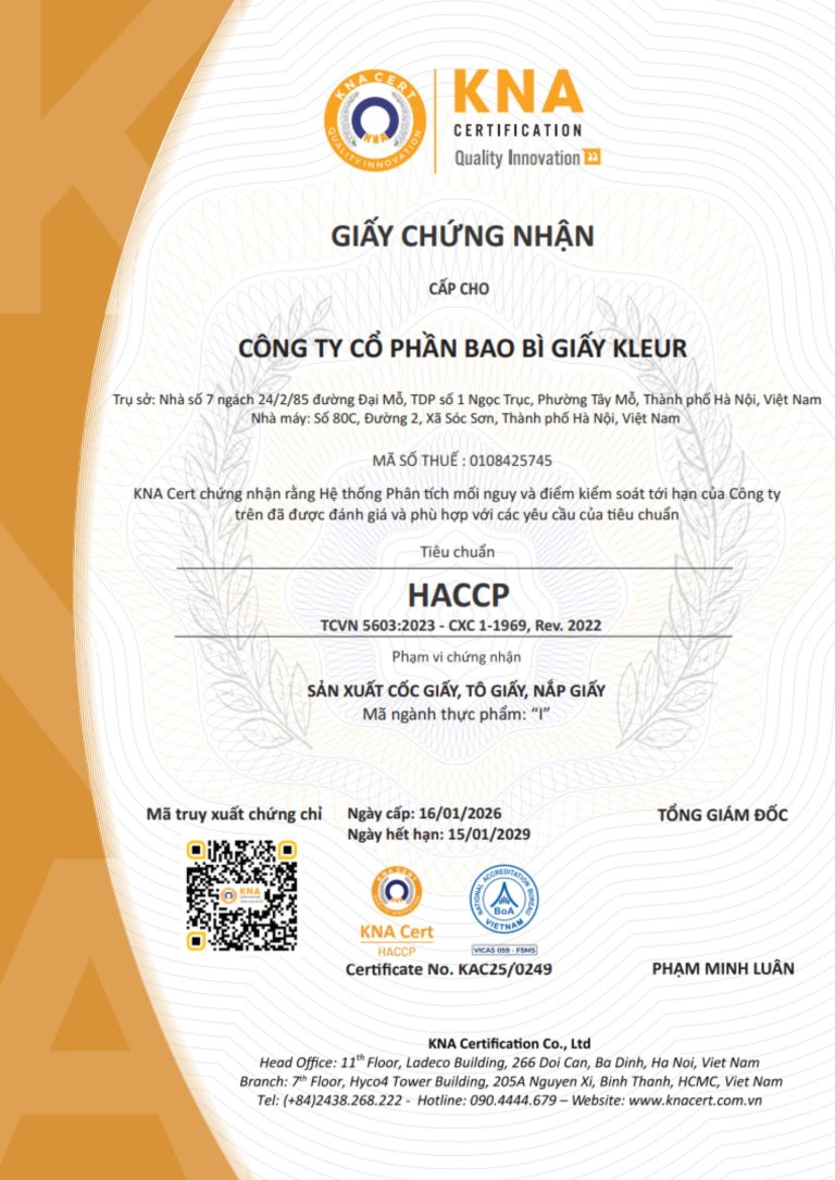 Hoạt động sản xuất công nghiệp và thương mại quy mô lớn với mạng lưới đối tác toàn cầu, Công ty cổ phần Bao bì giấy Kleur cam kết mang đến những giá trị thịnh vượng bền vững.